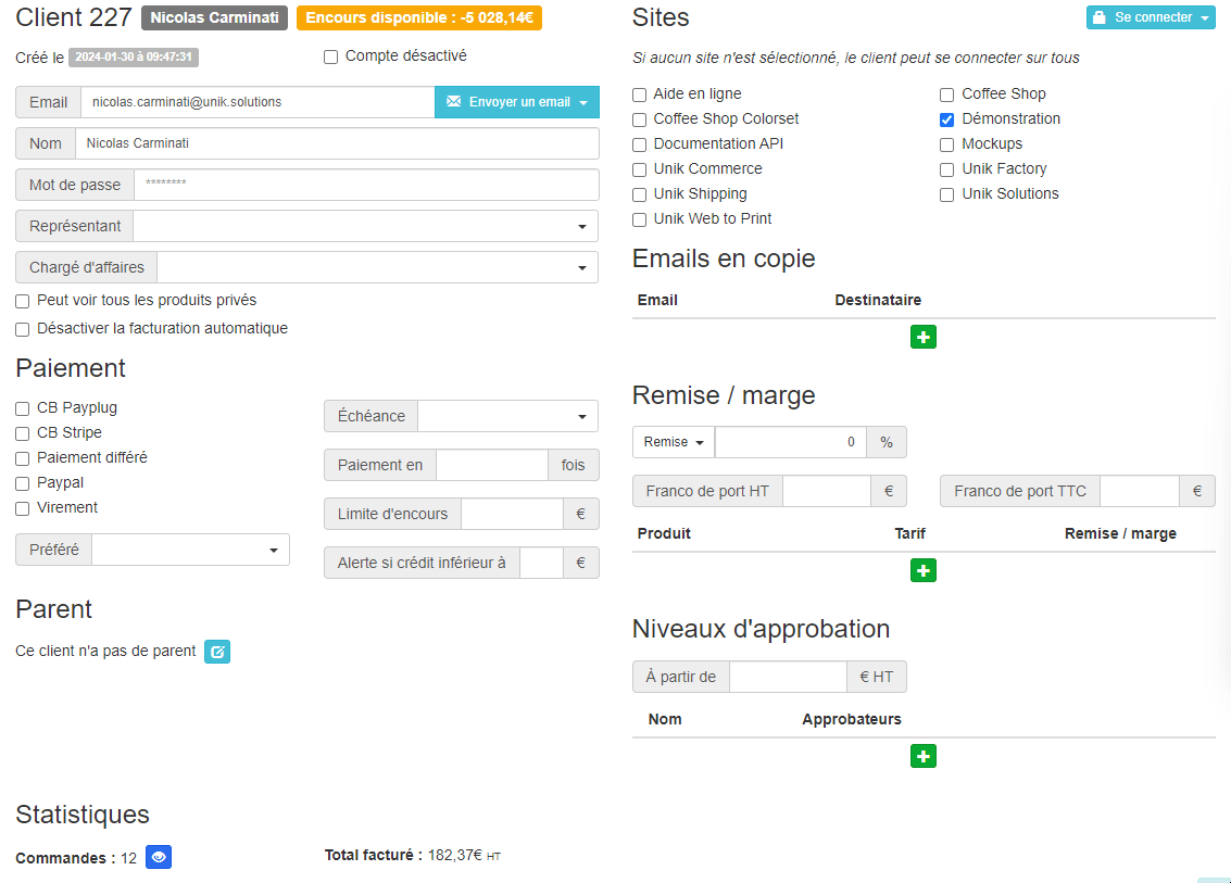 La création d'une fiche client ou société permet de saisir rapidement les informations nécessaires, et une multitude d’options rendent l’expérience utilisateur unique :